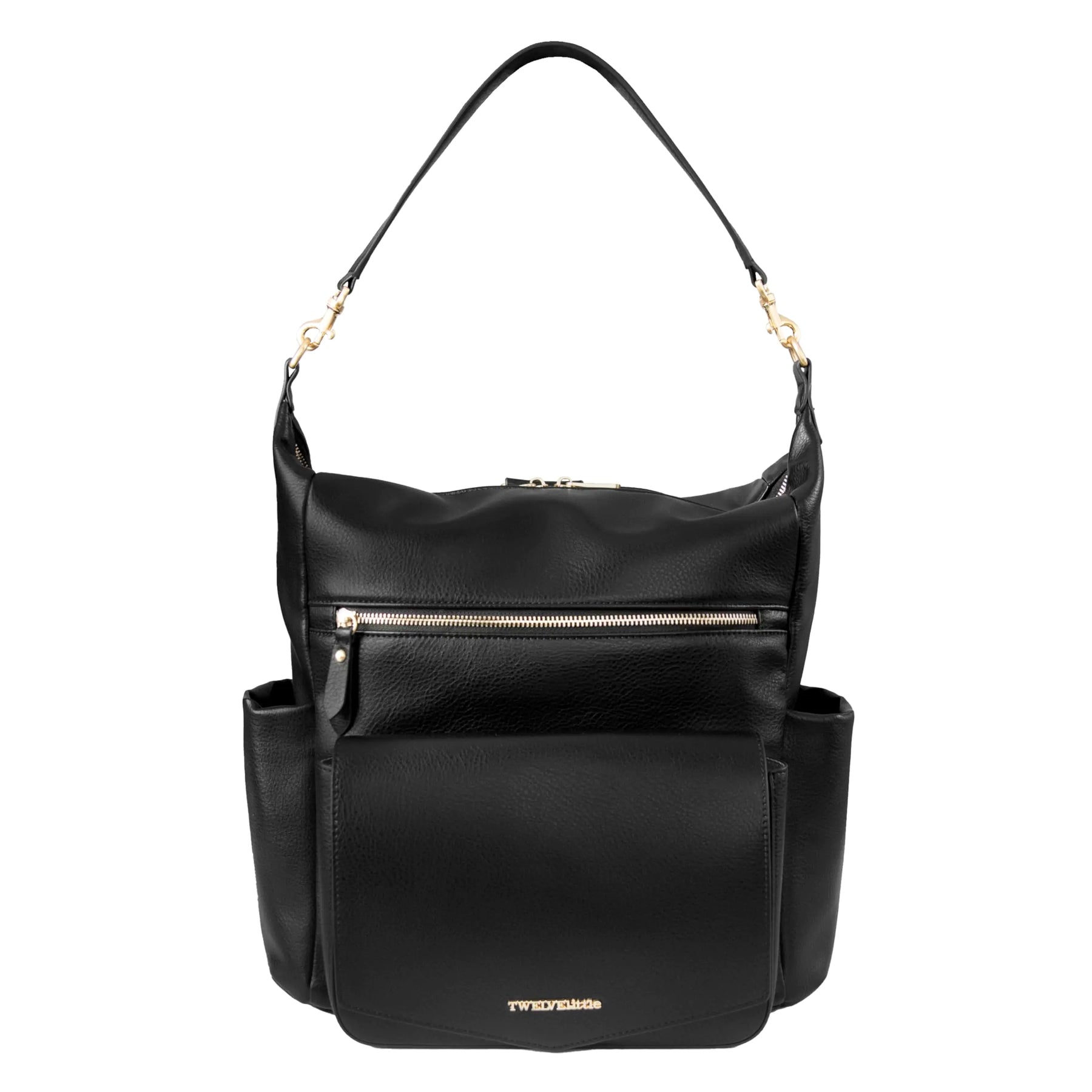 [The Perfect Convertible Backpack for Parents: Can be worn 3 ways! A sophisticated alternative to traditional diaper bags this bag can be worn two ways and has enough space to fit everything you might need during family outings travels and more Pack Everything You Need Anywhere You Go: Designed with thoughtful interior and exterior functionality; Featuring multiple pockets insulated bottle pockets a front mag snap wipe pocket with opening for wipe pouch (Included) and a travel-friendly back sleeve that fits through luggage handles. 10 pockets total: 5 exterior pockets and 5 interior pockets. One interior insulated bottle pocket with mag snap flap closure to keep bottles warmer or cooler for longer A Bag for Years to Come: Made of high quality water-resistant fabrics and vegan leather this Hobo backpack covers all the essential needs of a diaper bag and it can still be used long after the diapering stage has passed Fashionable & Functional Design: Switching out your bag from one style to another is simple with this one of a kind design which allows it to go from a hobo shoulder bag to a backpack with just a few adjustments. Carry it as a hobo for work or brunch with the ladies and switch gears when out later with the baby. It can even be hung from a stroller or on top of a luggage handle which makes this diaper bag incredibly versatile and easy to bring around. 13.25"[H] x 12.5"[W] x 5.5"[D] Practical & Convenien: Spot cleaning recommended; Everyday Hobo backpack for the modern family; TWELVElittle strives to bring a little more ease to the art of parenthood]