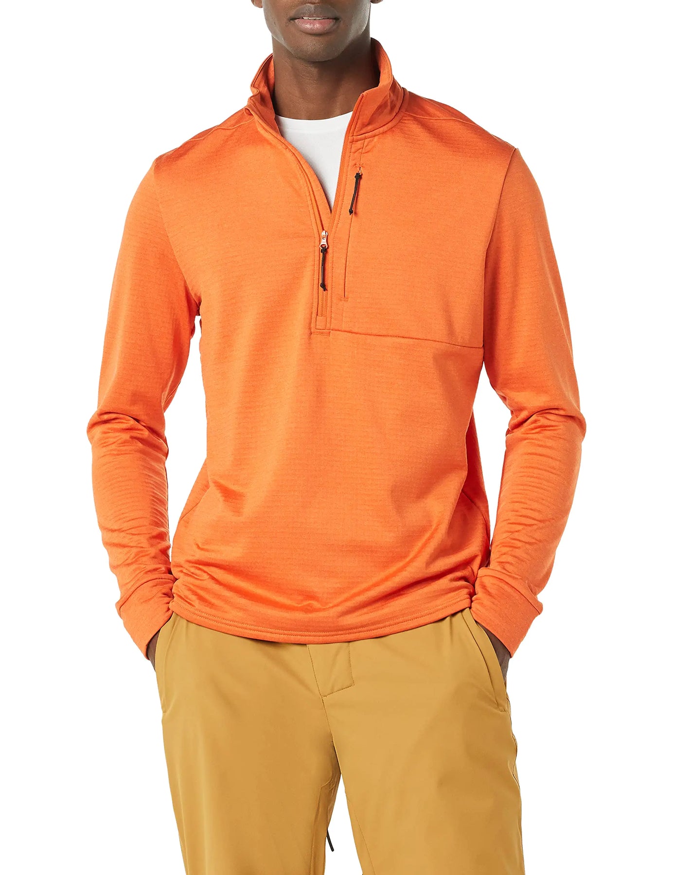 Amazon Essentials Mens Performance Ski Midlayer Quarter-Zip Orange X-Small
