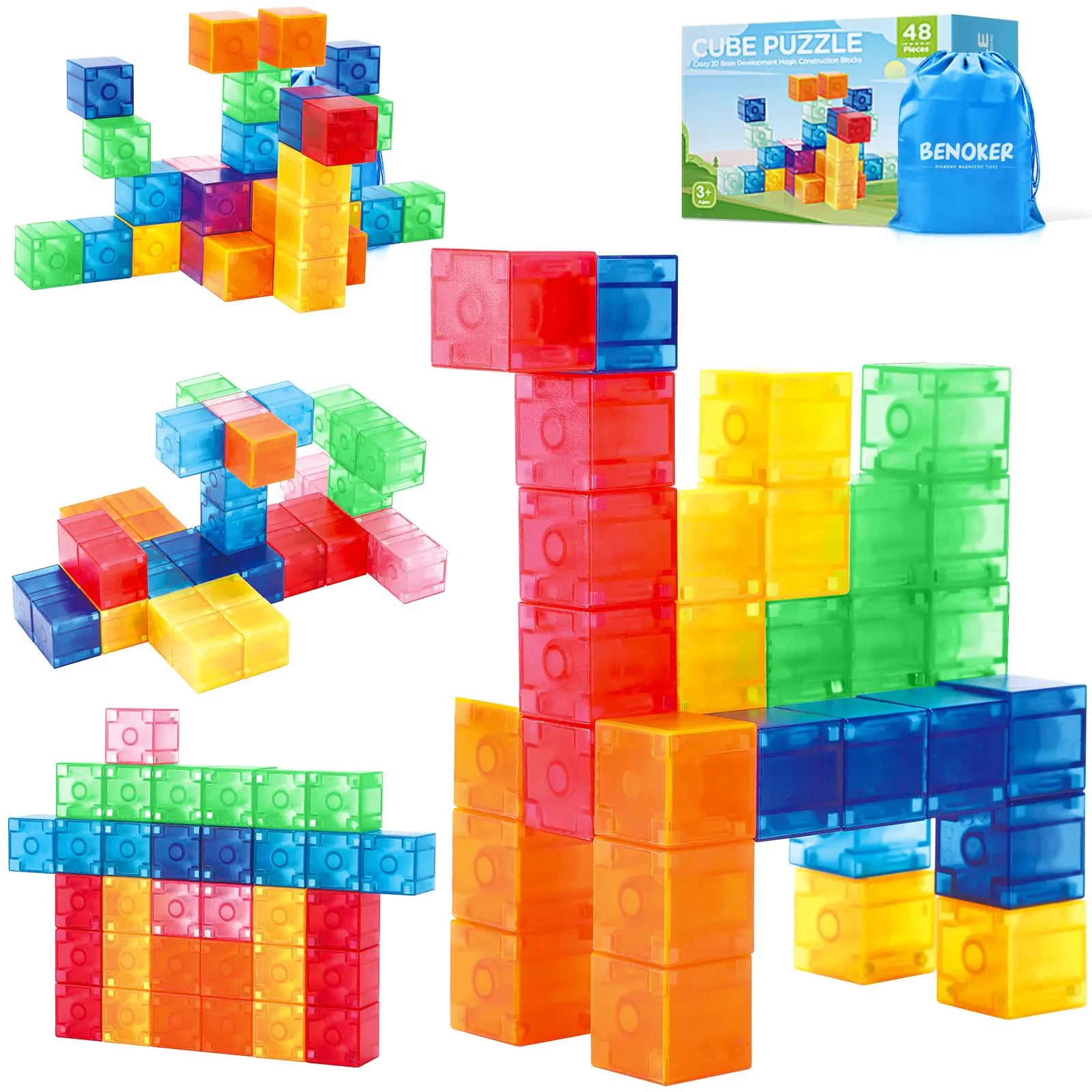 [Magic Magnets 3D Blocks - Experience a rainbow of colors with our set of Colorful Clear Magnetic Building Blocks.Magnetic Tiles can be built in a variety of shapes planes trees dogs rockets camels or any other objects come to life. Let them build a world of imagination and creativity! Magnetic Upgrade - Magnetic blocks are equipped with strong magnets to ensure a tight connection with each other. This feature enhances stability during the building process allowing kids to build taller and more complex structures with ease. "Premium Quality Material - We always put childrens safety first. Our magnetic blocks are made entirely from high quality food-grade ABS latex-free BPA-free non-toxic and odourless which means that children can play with them in complete safety without any harm." "Pre-school Must-Have -Block toys stimulate childrens manipulation imagination and creativity problem solving socialisation and motor skills.More than anything its the perfect toy to keep away from screens!" Gifts For All Ages -Cool girls boys birthday gifts and toys for any holidays and occasions such as birthdays Christmas Easter kindergarten daycare centres and more. Kids will enjoy the fun and learn through playing with these magnetic tiles.]
