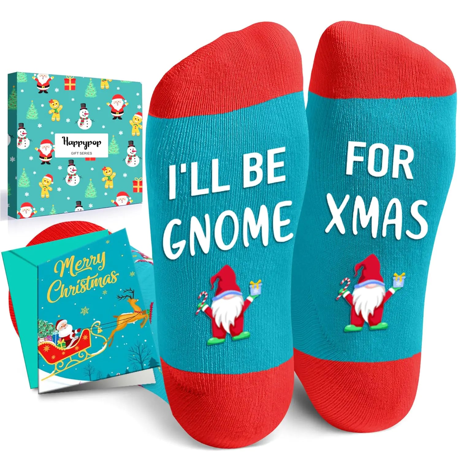 HAPPYPOP Christmas Gifts Stocking Socks for Men - Secret Santa Socks Gnome Christmas Stocking Stuffers for Women Gnome Gifts for Teens with Greeting Card
