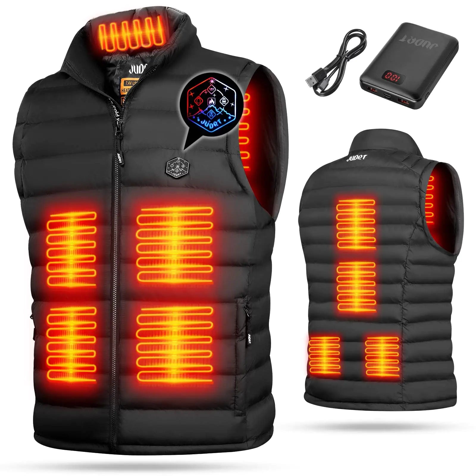 JUDRT Mens Heated Vest with Battery Pack Lightweight Down Rechargeable Electric Heated Apparel with 9 Heating Panels-XXL