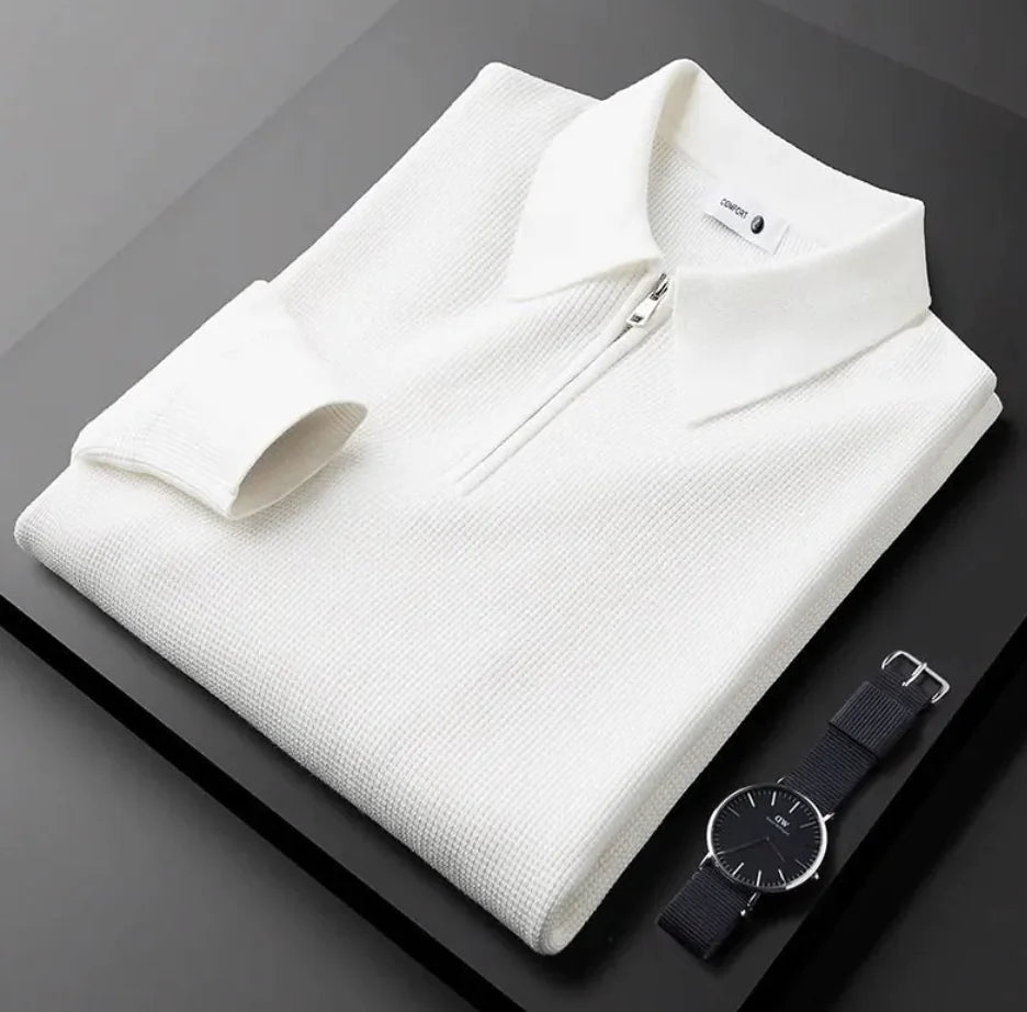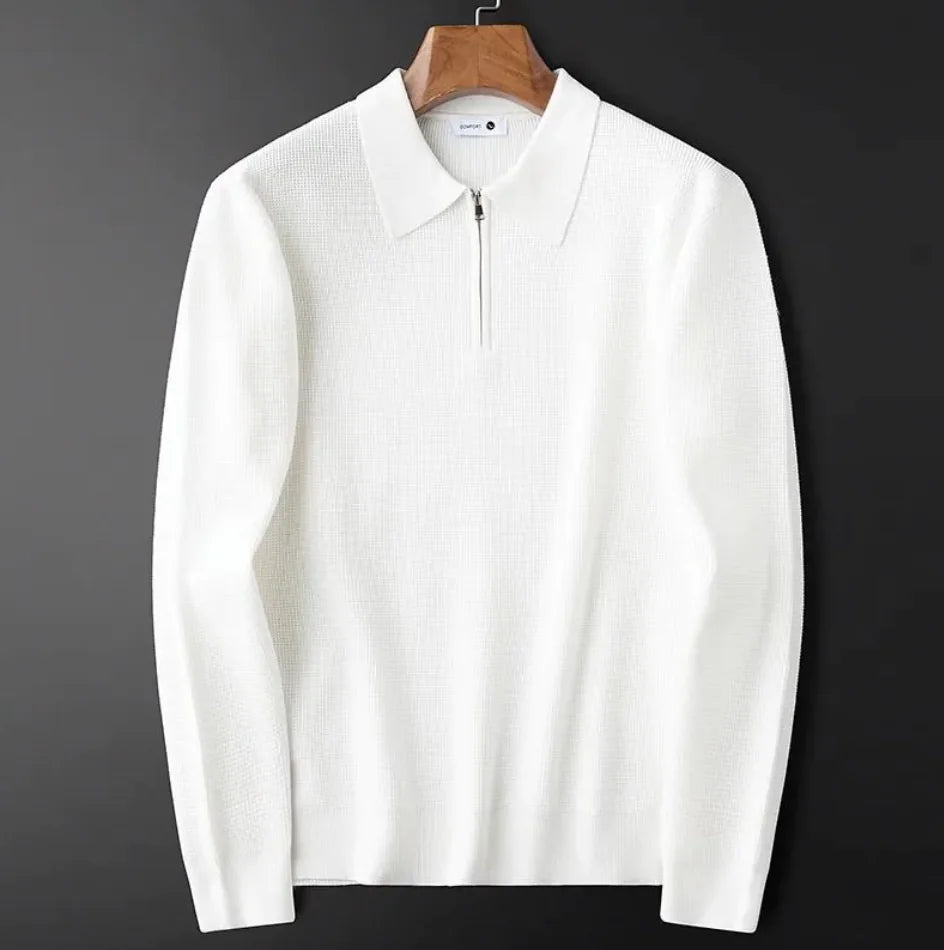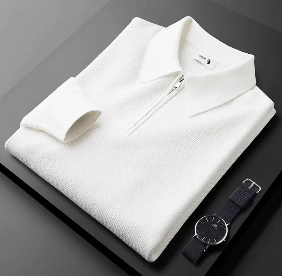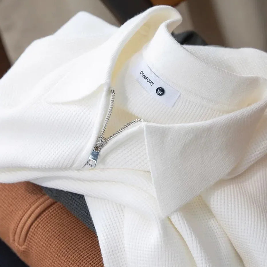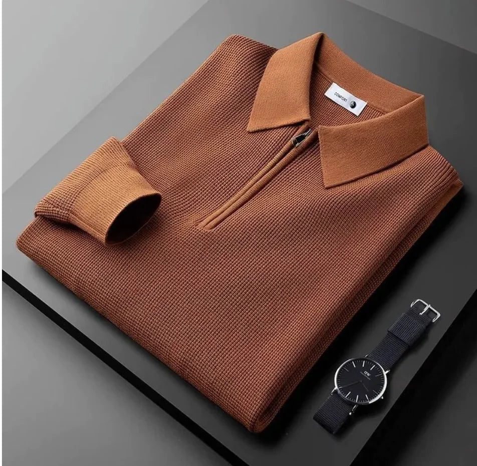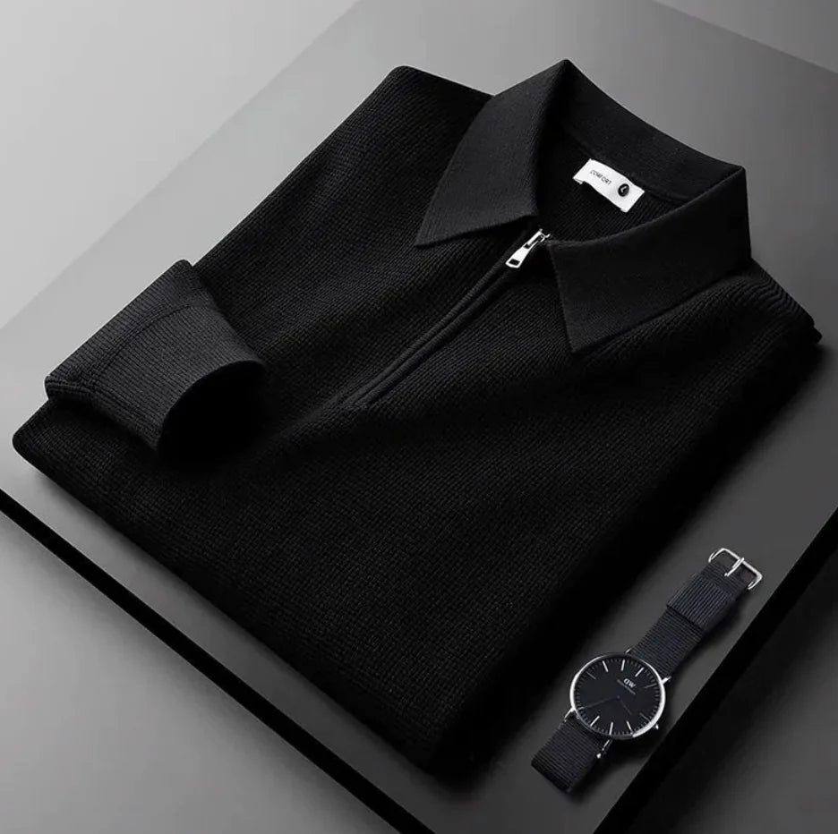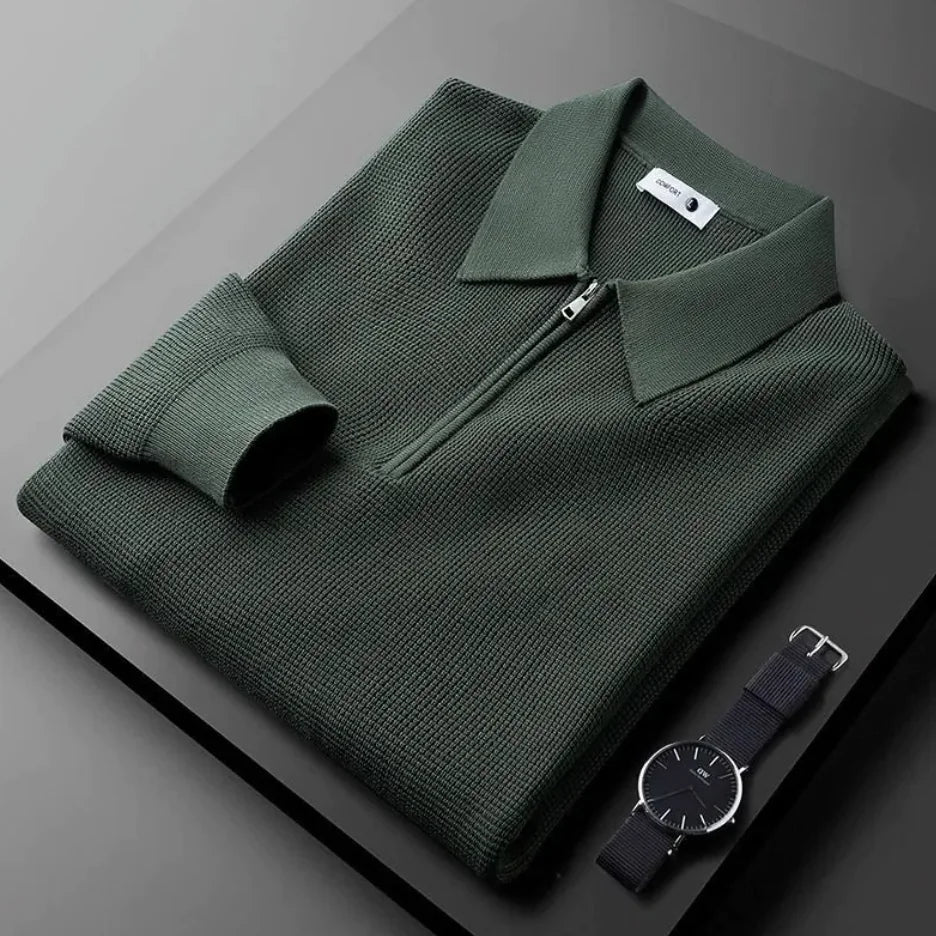 Men's Knitted Waffle Half-Zip Lapel Sweater
