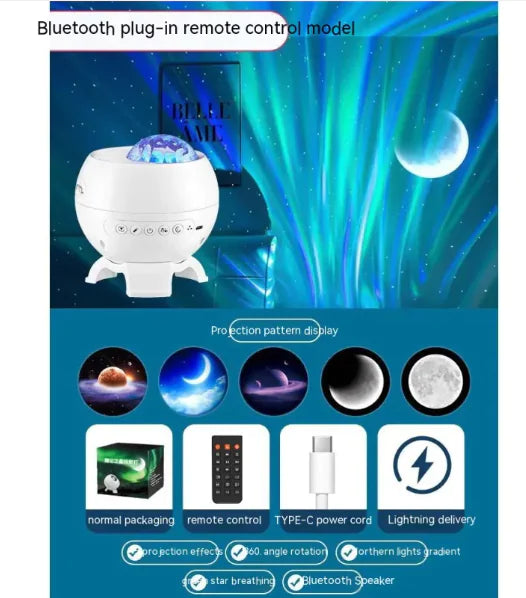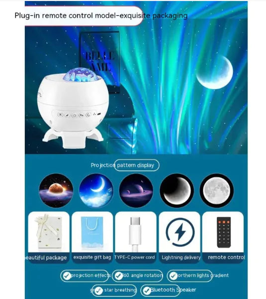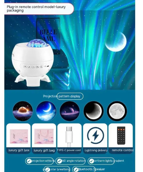 Transform your bedroom into a peaceful, celestial oasis with this Northern Lights Starry Sky Projector Lamp. This compact night lamp creates a soothing atmosphere by projecting a beautiful display of stars and vibrant auroras onto your walls or ceiling. Perfect for setting the mood, relaxing, or helping with sleep, it’s a great addition to any bedroom or living space. Ideal for both kids and adults alike.
