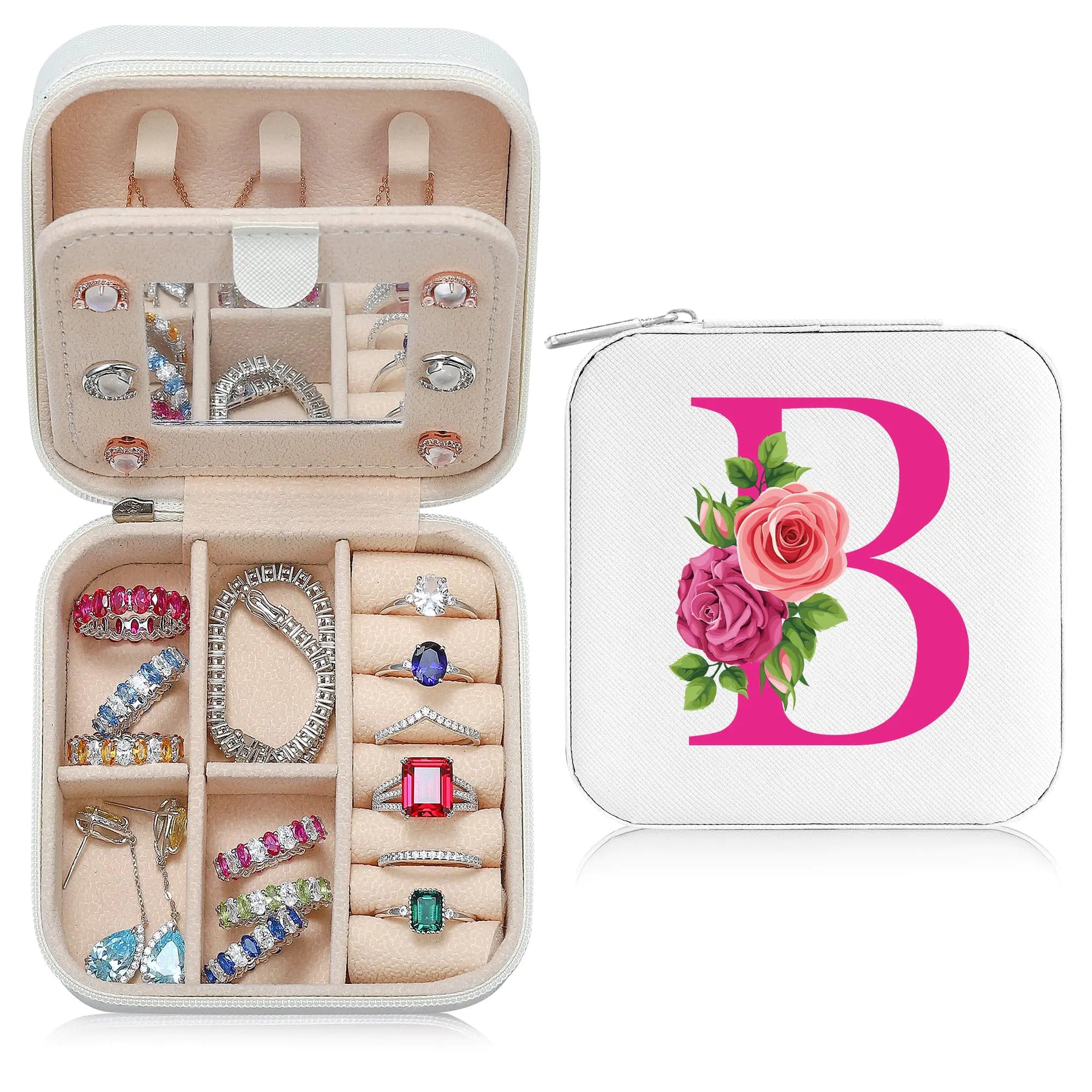 Parima Graduation Jewelry Boxes for Travel - Pink Travel Jewelry Boxes for Women Travel Jewelry Organizer for Jewelry Necklace Earrings Bracelets Travel Gifts for Women Friends - Letter B White