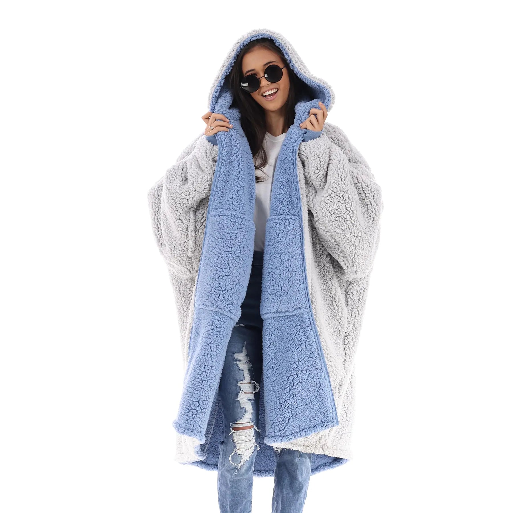 THE COMFY Teddy Bear Full Zip | Reversible Sherpa Lined Wearable Blanket with Full Length Zipper Oversized Design with Hood and Pocket From Shark Tank for Women & Men Warm and Cozy Gifts