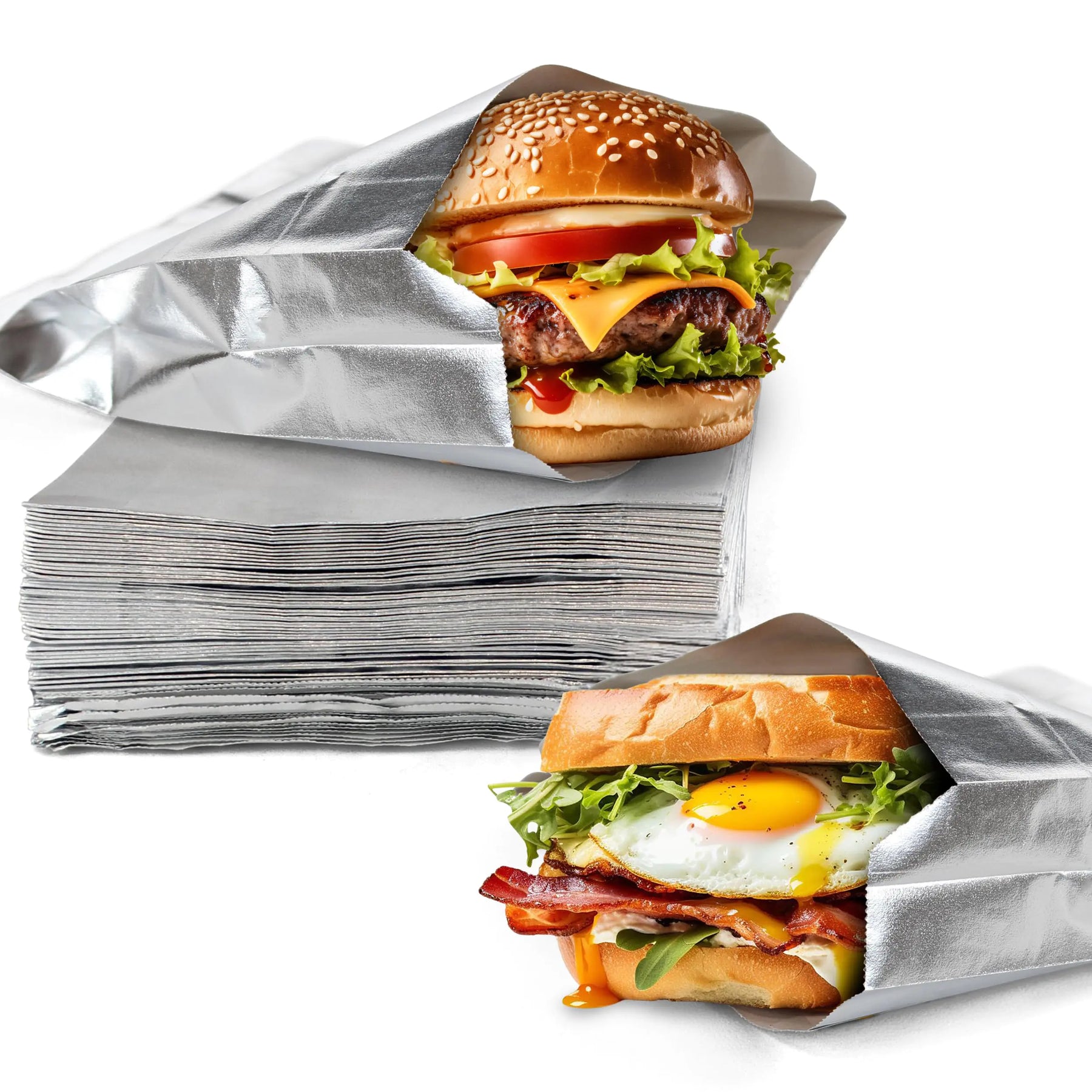 [[No Mess Express]: Spec101 Paper Lined Aluminum Sandwich Wraps 100 Pack soak up any grease sauces or juices that might seep out of your burger [It’s Staying Hot in Here]: Our burger wrappers maintain their heat for up to 45 minutes giving you plenty of time to find the perfect seat; Safe under heat lamp for extra warmth [Perfect Size]: With a 6-inch (15.24cm) depth you can easily slide any standard size burger through the 6.5-inch (16.51cm) wide opening for easy mess-free handling and consuming [Clean and Simple]: Our foil hamburger wrappers have a smooth plain outer appearance; Ideal for customizing with logo stickers or distinguishing orders [Any Food Anywhere]: Use for chicken BBQ breakfast sandwiches wraps burritos and more; Excellent for orders of French fries nuggets pretzel bites or fried pickles]