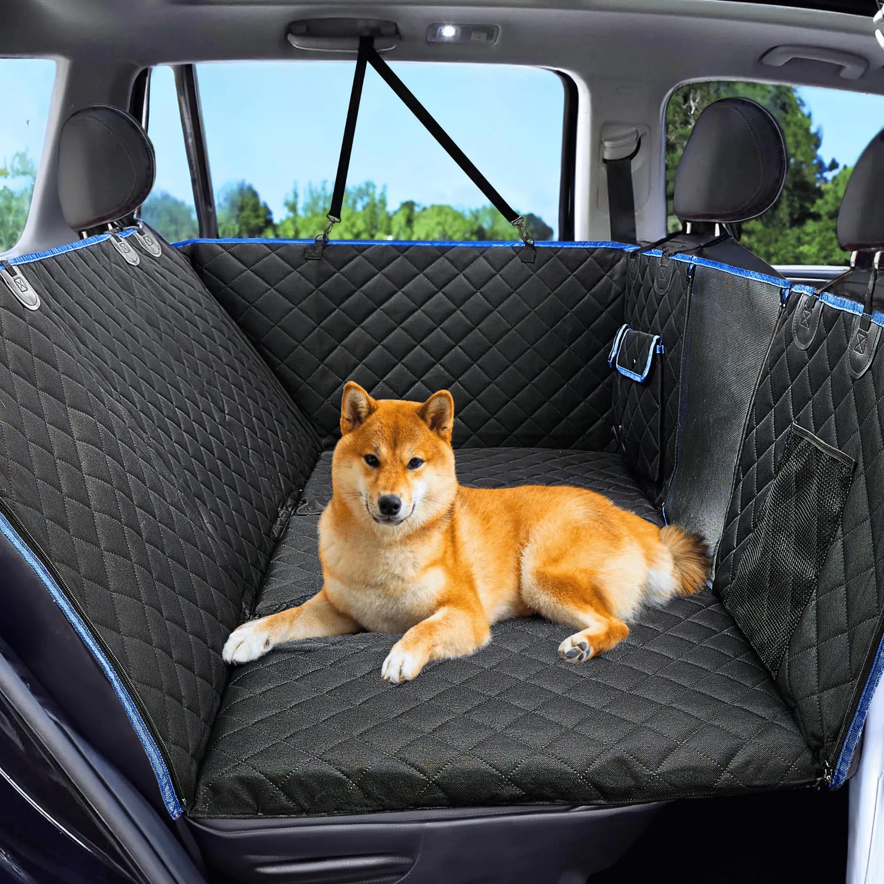 [Waterproof & Scratchproof Design - Our dog covers for cars back seat provide waterproof and scratchproof protection making every trip worry-free. Enjoy your adventures with our durable dog hammock designed to keep your car dog bed safe from messes. Nonslip Safety with Mesh Window - Keep your furry friend cozy and secure with our nonslip dog backseat cover. The mesh window ensures airflow and visibility transforming it into a car dog bed that your pet will love. A perfect dog car bed for any journey! Protects Doors & Seats - This dog car seat cover for back seat offers comprehensive protection covering doors and seats. Our backseat protectors for dogs ensure a clean car interior making them an ideal back seat protector for pet owners on the go. Convenient Pockets & Hard Bottom - With built-in pockets organize pet essentials effortlessly. The hard bottom adds extra support making it a reliable back seat dog cover for car use. Ideal for SUVs trucks and cars our design ensures a stable and comfy ride. Universal Fit for SUVs Trucks & Cars - Designed for versatility our car pet seat cover back seat fits most SUVs trucks and cars. This pet hammock for car ensures a snug fit making it the perfect dog seat covers for any vehicle enhancing your car dog seat cover experience. IMPORTANT SIZING DETAILS - Our dog seat cover for back seat is designed to fit most standard vehicles but may be too large for trucks with half doors. Please ensure the dimensions (52 inches by 24.8 inches) are compatible with your vehicle before purchase.]