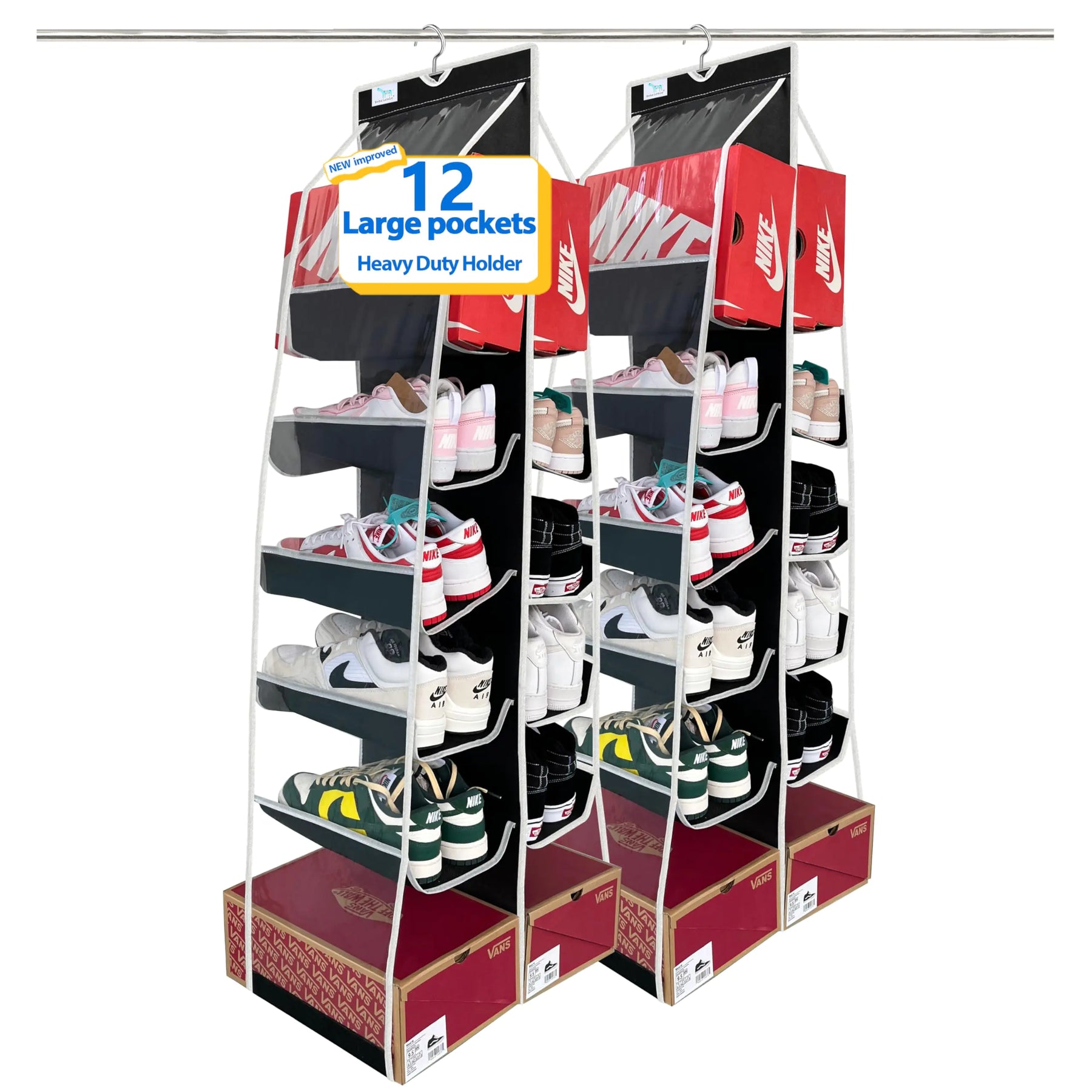 zebricolo,2-pack hanging shoe rack for closet,Extra large 24 Pocketcloset shoe organizer hanging,Gets Shoes Organized Well,closet hanging shoe organizer,hanging closet shoe organizer Black/White
