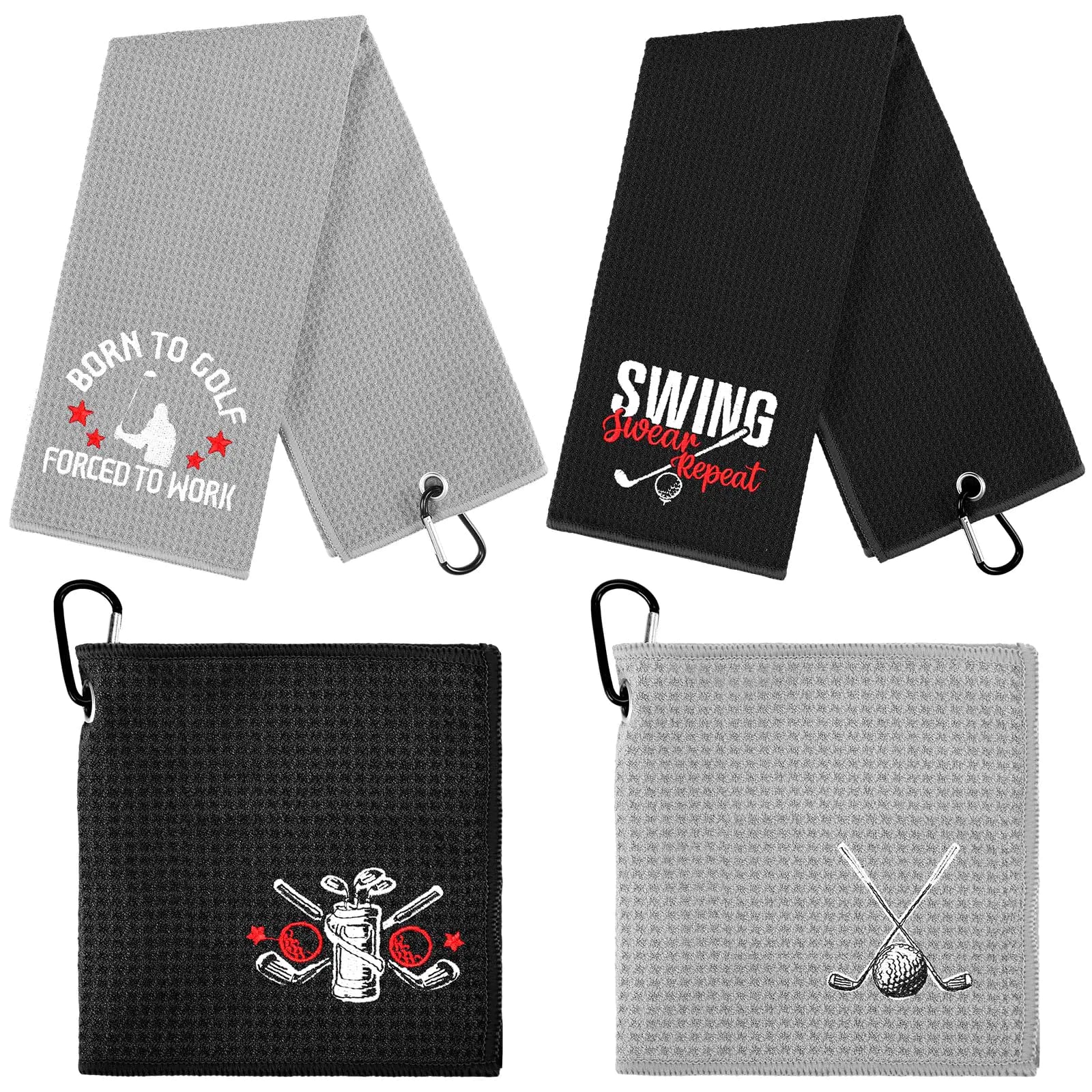 • 4 x Golf Towels (2 black + 2 grey)
