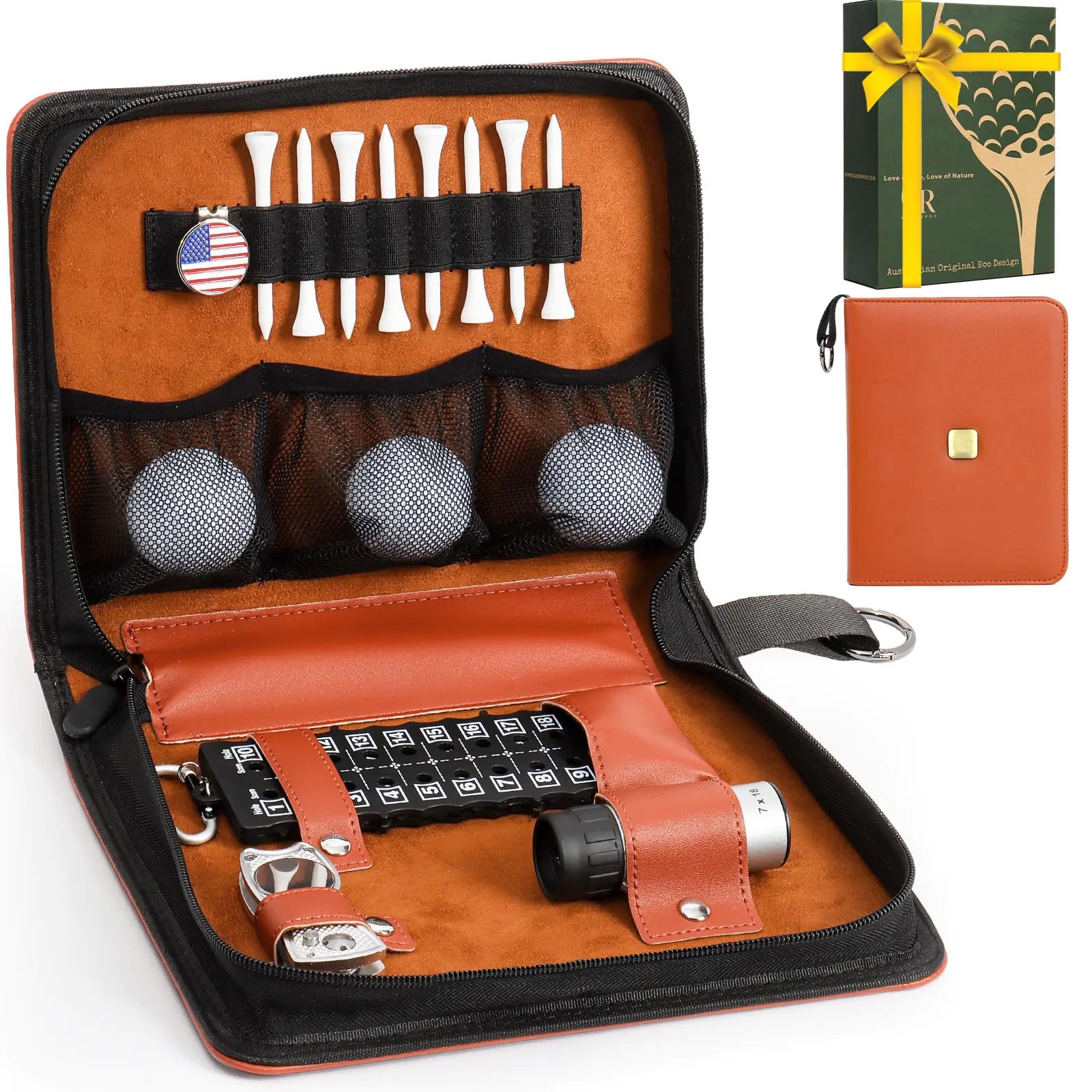 🏌️♂️ Complete Accessory Set: Includes golf divot tool, scorer, mini rangefinder, practice balls, golf ball marker & hat clip, white tees, and more — everything you need for a great round!