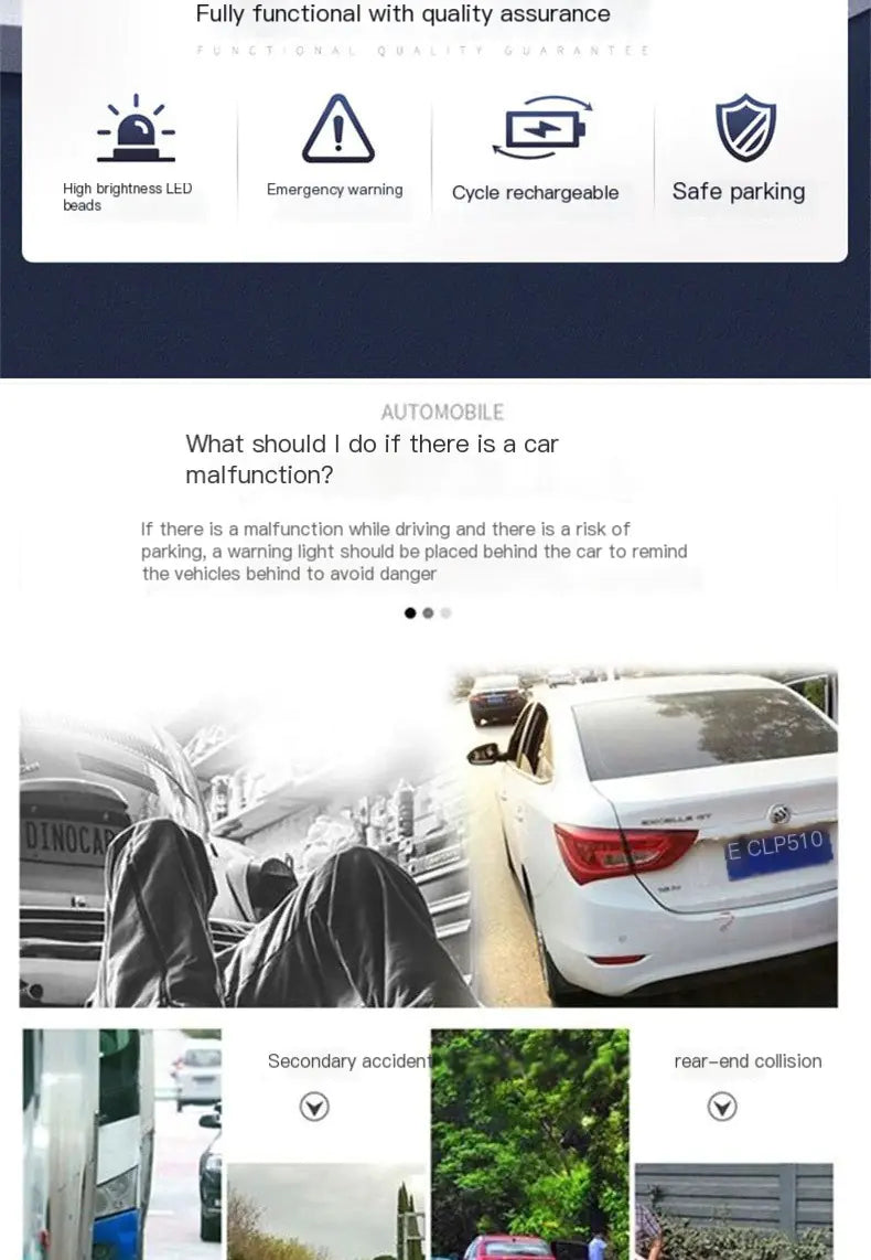 Designed with versatility in mind, this car emergency light serves as a bright warning sign to alert other drivers, ensuring your safety and the safety of others. The LED technology provides exceptional visibility from a distance, making it perfect for use during nighttime breakdowns or roadside emergencies.